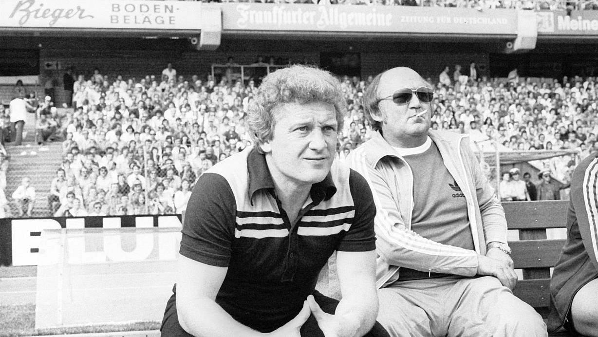 Mitfiebern auf der Trainerbank: DSC-Coach Kalli Feldkamp beugt sich vor, sein Sitznachbar Walter Sprick zieht am Zigarettchen. | © Imago-Images