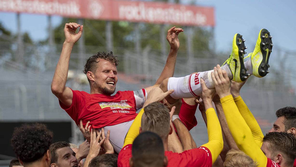 Karriere-Ende, getragen von Kollegen: Sebastian Schuppan ließ aber auch ein schönes Geschenk zum Abschied in Würzburg. | © imago images/HMB-Media