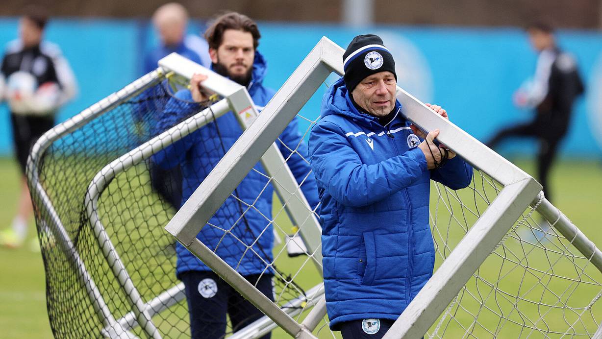 Arminia-Trainer Frank Kramer (r.) ist offenbar einer der vielen Betroffenen beim massiven Corona-Ausbruch in Reihen der Bielefelder. | © Oliver Krato