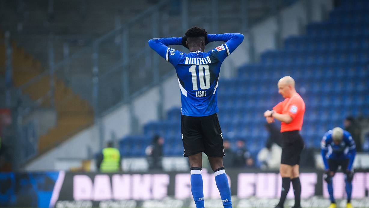 Schon war das alte Arminia-Leid perfekt, die Pfiffe nahmen zu, "Wir wollen euch kämpfen sehen!", schallte es von den Rängen. Bielefeld versuchte es - und schaffte kurz vor dem Pausenpfiff den so wichtigen Anschluss, als Andrés Andrade eine Freistoßflanke von Robin Hack ins kurze Eck wuchtete (45. +1). Nach einem weiteren Standard gelang fast noch der Ausgleich, Ramos traf den Ball nicht sauber. 1:2 zur Pause.