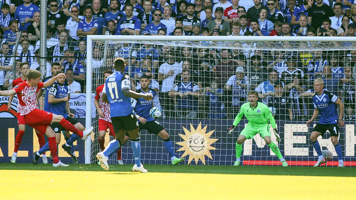 Arminia-Keeper Kersken keine Chance beim 0:1