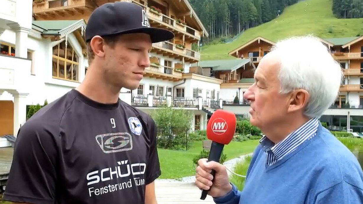 NW-Redakteur Jörg Fritz interviewt Arminia-Legende Fabian Klos während des Trainingslager 2016 im österreichischen Leogang. | © NW