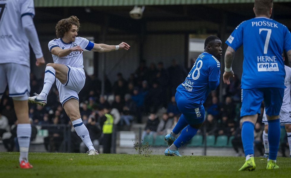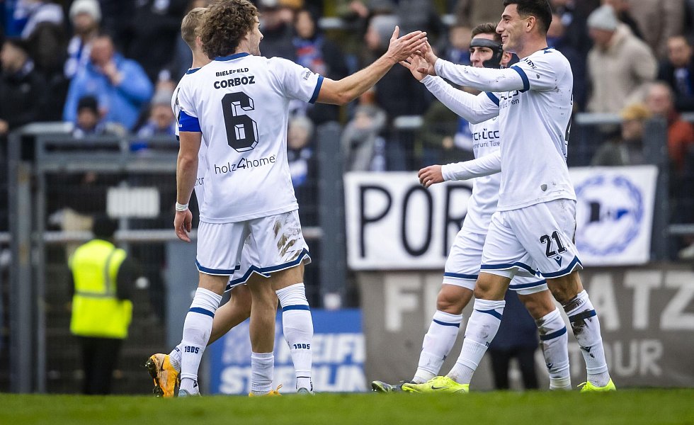 Den Bielefeldern war das egal, der DSC spielte immer weiter unbeirrt nach vorn. Mit Erfolg. In der zehnten Minute war es Mael Corboz, der zur mittlerweile völlig verdienten Gästeführung traf. Nach einer Flanke von Maximilian Großer landete der Ball auf Umwegen bei Corboz, der Kapitän zögerte nicht und schoss von der Strafraumkante per Direktabnahme mit links ins Herner Tor.