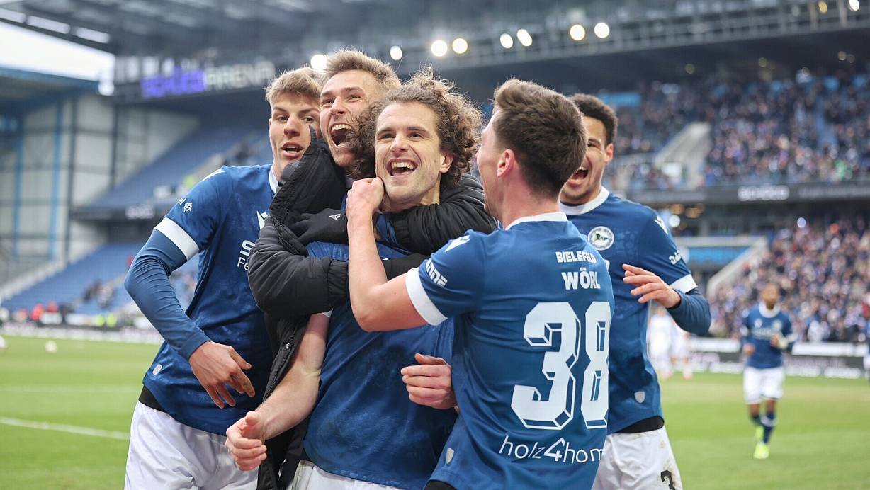 Nun tauschte Kniat seine komplette Angriffsreihe und brachte Isaiah Young, Merveille Biankadi und Julian Kania (71.). Doch gegen Aue musste es der Kapitän richten. Als alles schon nach einer trostlosen Nullnummer aussah, hielt Corboz einfach mal drauf und traf aus dem Nichts (82.). Der Jubel in der Schüco-Arena kannte keine Grenzen. Erst recht nicht, als Kania nur drei Minuten später auf 2:0 stellte.