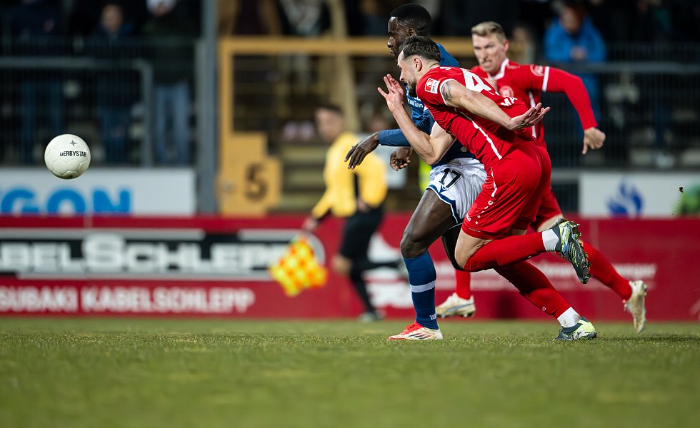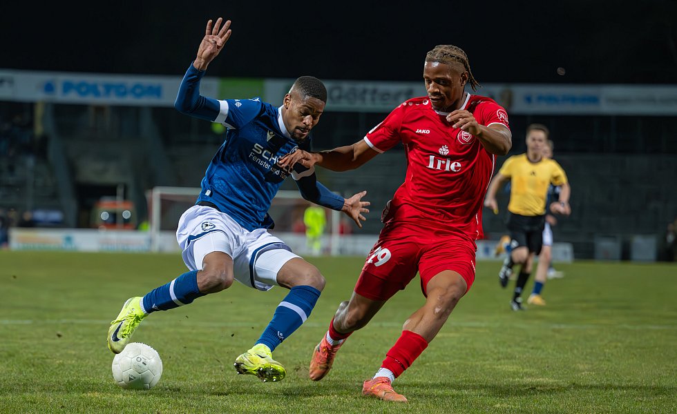 Die erste gute Gelegenheit hatten allerdings die Sportfreunde. Derrick Kyere probierte es mit einem Diagonalschuss, der Ball hoppelte am Tor vorbei (2. Minute).