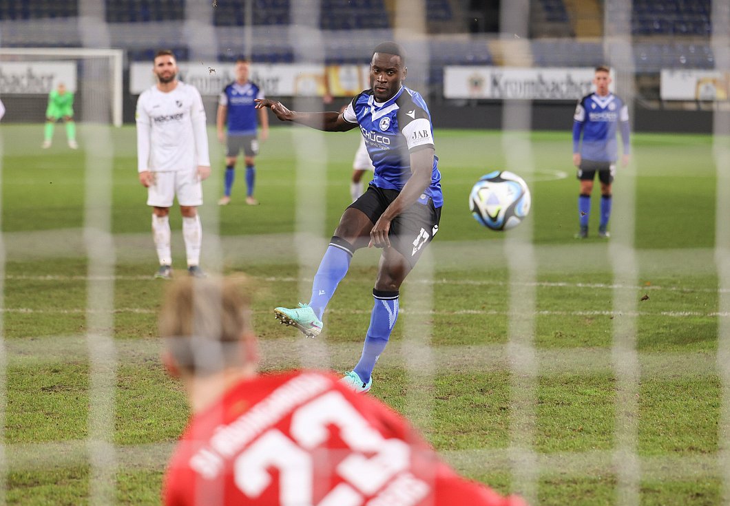 Das Ergebnis liest sich am Ende deutlicher, als das Spiel es tatsächlich ist. Arminia geht durch das Tor von Leandro Putaro in Führung und spielt nach etwas mehr als einer halben Stunde zudem in Überzahl. Doch es dauert bis zur 71. Minute, ehe Bielefeld mit dem Treffer von Merveille Biankadi alles klarmacht. Der Offensivspieler legt noch zwei Tore nach und ist mit seinem lupenreinen Hattrick der Mann des Spiels.