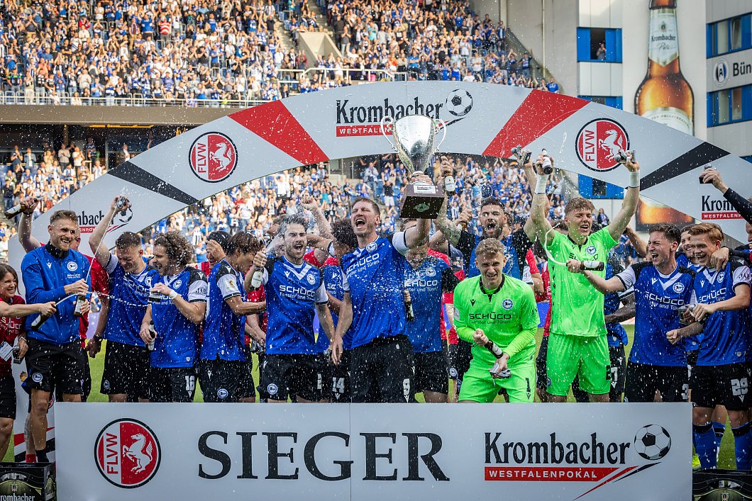 Die Verler antworten in Person von Tobias Knost. Doch der Sportclub schwächt sich in der Folge mit zwei Platzverweisen selbst. So kann Marius Wörl das 3:1 erzielen und Fabian Klos stemmt in seiner letzten Partie noch einen Pokal in die Höhe. Arminia ist damit für den DFB-Pokal qualifiziert und die Fans skandieren einen Klassiker: „Berlin, Berlin, wir fahren nach Berlin“.