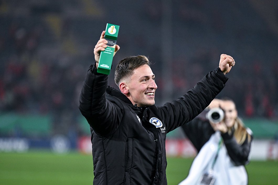 Auch im Ohlendorf-Stadion im Gütersloher Heidewald reicht es einen Monat später nur mit Ach und Krach zum Weiterkommen für den Favoriten. Gegen den Oberligisten geht Arminia durch Noah Sarenren Bazee früh in Führung. Doch dank des Ausgleichs von Victoria-Kapitän Oliver Cylkowski schnuppert der Außenseiter zur Halbzeit an der Sensation. Das 2:1 durch Nassim Boujellab sorgt dann aber doch noch für den Achtelfinaleinzug des DSC. „Ich musste schon zittern und habe ein oder zwei Schweißperlen vergossen“, sagt Coach Kniat. Aber: „Für einen Sieg muss man sich nicht entschuldigen.“