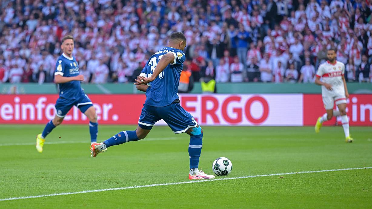 In der zwölften Minute hat Noah Sarenren Bazee das 1:0 für den DSC auf dem Fuß. Doch der Ball klatscht an die Latte – und das Finale kippt zugunsten des VfB.