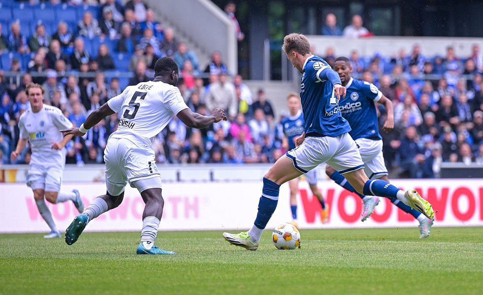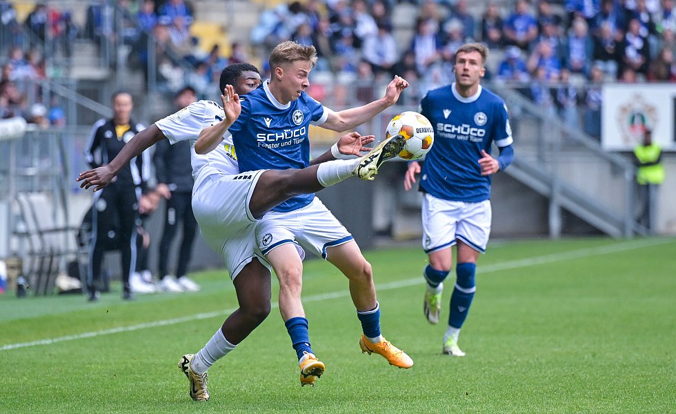 Für den DSC, der ebenso wie der Gast schon vor der Partie für die erste DFB-Pokal-Hauptrunde 2025/26 qualifiziert war, war es das 50. und letzte Pflichtspiel dieser langen, intensiven Saison. Und es war noch mal eine schwere Aufgabe, denn der Viertligist agierte mutig und hatte vor den 23.157 Zuschauern in der prall gefüllten Schüco-Arena gute Möglichkeiten.