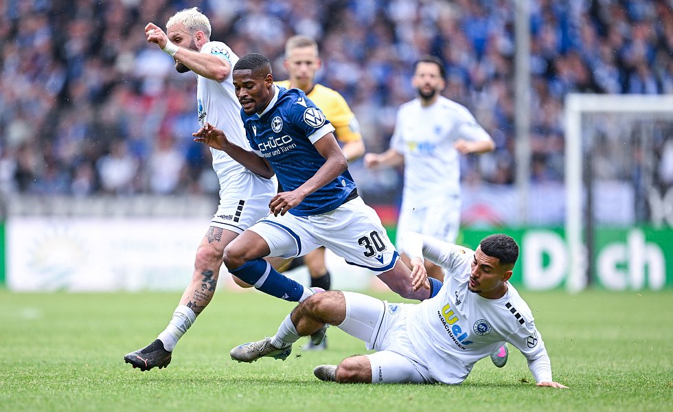 In der 90. Minute schrieb dann Noah Sarenren Bazee eine dieser Geschichten, die eben nur der Fußball schreibt. In Berlin hatte er gegen den VfB Stuttgart die frühe Führung vergeben, als er freistehend aus kurzer Distanz an der Latte scheiterte. Gegen Lotte besorgte der Joker den umjubelten 2:0-Endstand. Die Arminen konnten somit zumindest das „kleine“ Double feiern.