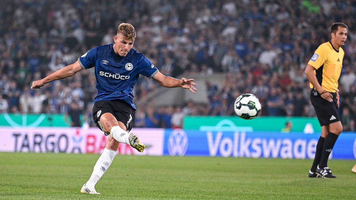 Julian Kania bleibt im DFB-Pokal gegen Werder Bremen ein eigener Treffer verwehrt. Dennoch hat er großen Anteil am Sieg von Arminia Bielefeld. | © Teresa Kroeger