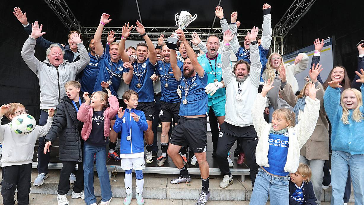 Arminia Bielefelds Traditionsmannschaft feiert den Sieg beim Klosterpforten-Cup in Marienfeld 2025. | © Wolfgang Rudolf