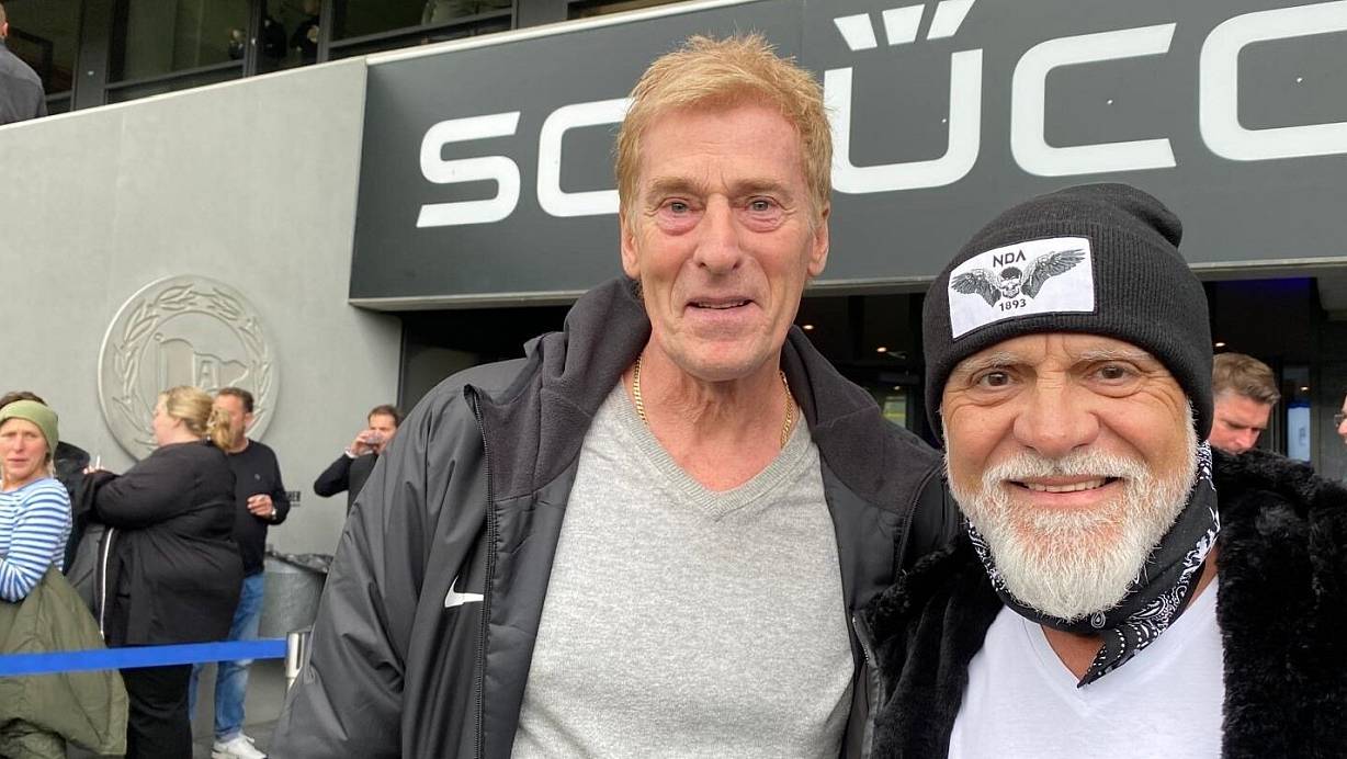 Uli Stein (l.) und Schlagerstar Nino de Angelo sind gemeinsam zum Spiel der Arminia gegen Schalke 04 gekommen. | © Wolfgang Rudolf