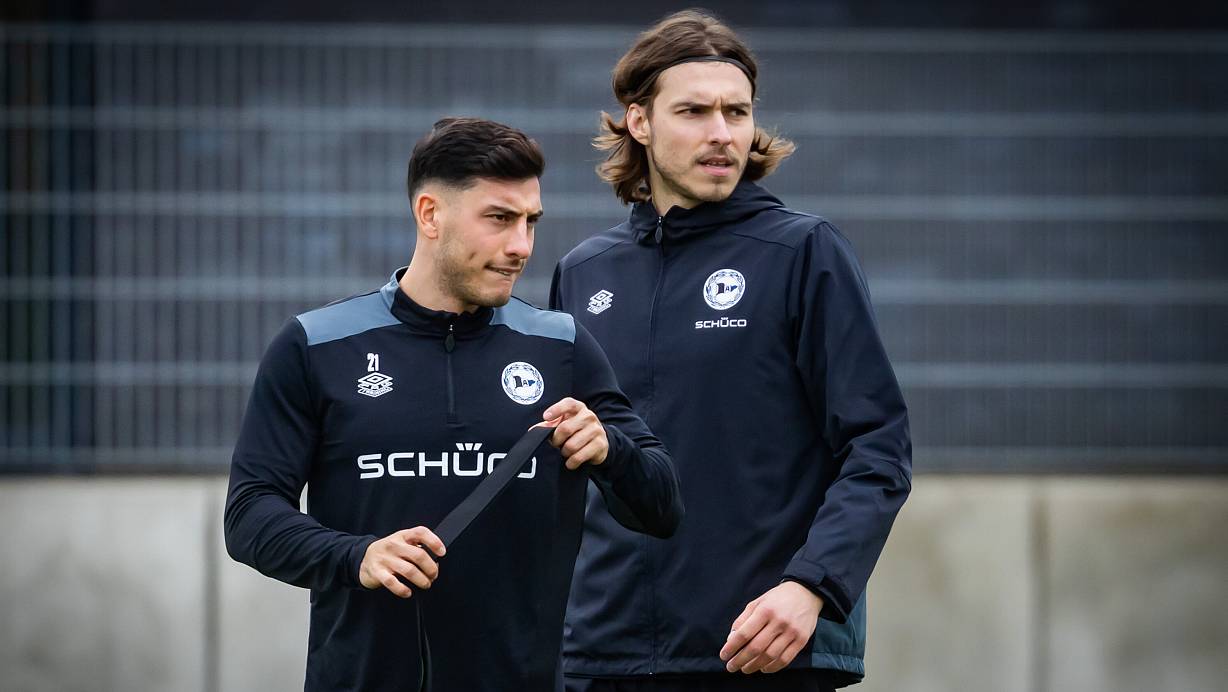 Die beiden Arminia-Profis Stefano Russo (l.) und Roberts Uldrikis absolvieren derzeit ein individuelles Trainingsprogramm. Während Russo nach seinem Innenbandriss schon wieder sehr weit ist, ist mit einem kurzfristigen Comeback von Uldrikis noch nicht wieder zu rechnen. | © Sarah Jonek