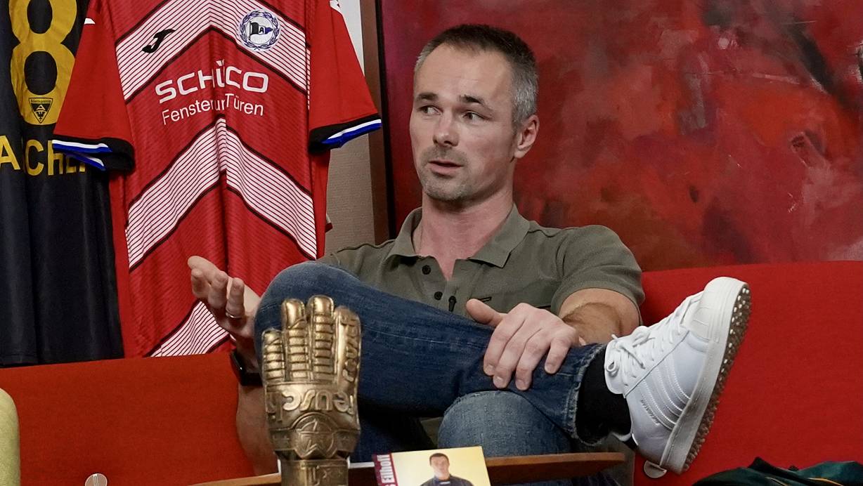 Seit dem 1. Juli ist er zurück im Nachwuchsleistungszentrum (NLZ) der Arminia. U17, U19, U21 – er hilft, die Keeper von morgen zu formen. Gibt Impulse. Steht auf dem Platz. Schmeißt sich selbst ins Eck, wenn es eng wird. Die Talente wollten erst testen, ob „der Mann mit den grauen Haaren“ es noch kann. Danach wussten sie: Ja, er kann.