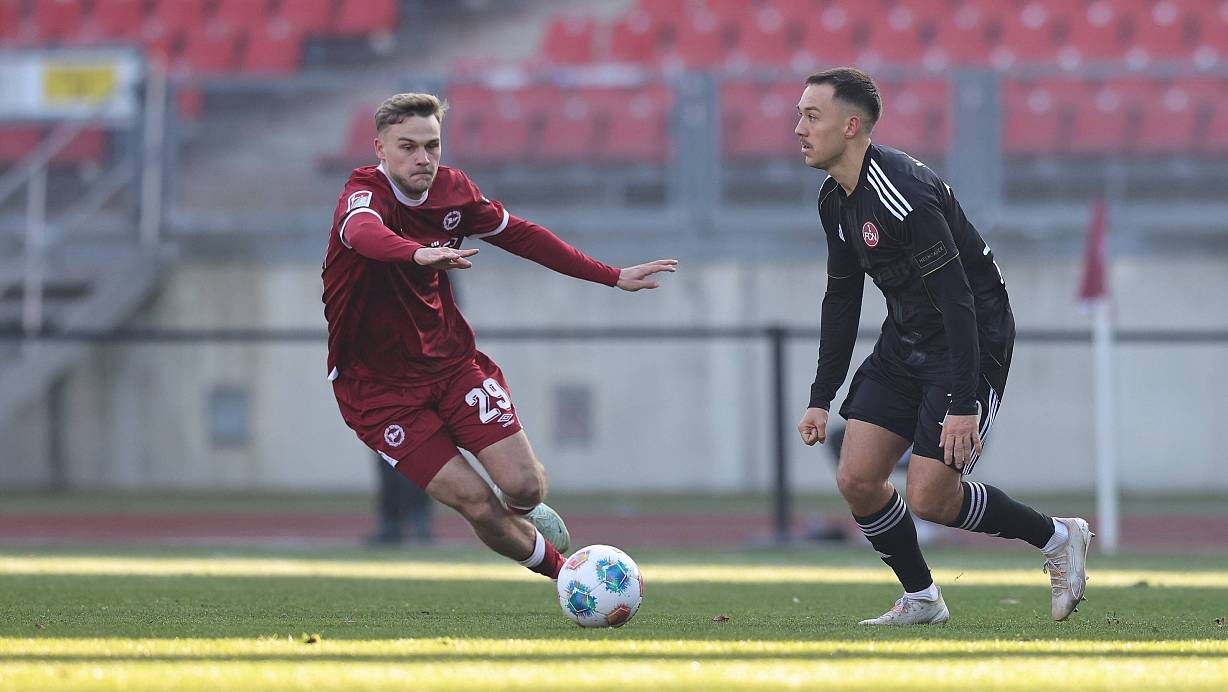 Und auch auf dem Platz hatte die Partie bis zu diesem Zeitpunkt für die 33.940 Zuschauer bei Temperaturen um den Gefrierpunkt kaum Erwärmendes zu bieten. Auf dem trotz Rasenheizung teilweise noch gefrorenen Platz taten sich beide Mannschaften äußerst schwer, ein offensives Momentum zu entwickeln. Einzig der Nürnberger Julian Justvan sorgte für einen Ansatz von Torgefahr (9.).