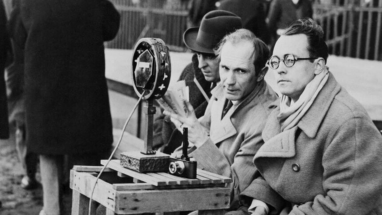 Bernhard Ernst (Mitte) und sein Co-Kommentator Paul Laven (rechts) bei der Reportage eines Fußballspiels im Jahre 1930. Ernst war auch der Reporter der ersten Radioübertragung eines Fußballspiels überhaupt – zwischen Arminen und Münsteranern. | © Abbildung nur innerhalb des Portals Rheinische Geschichte