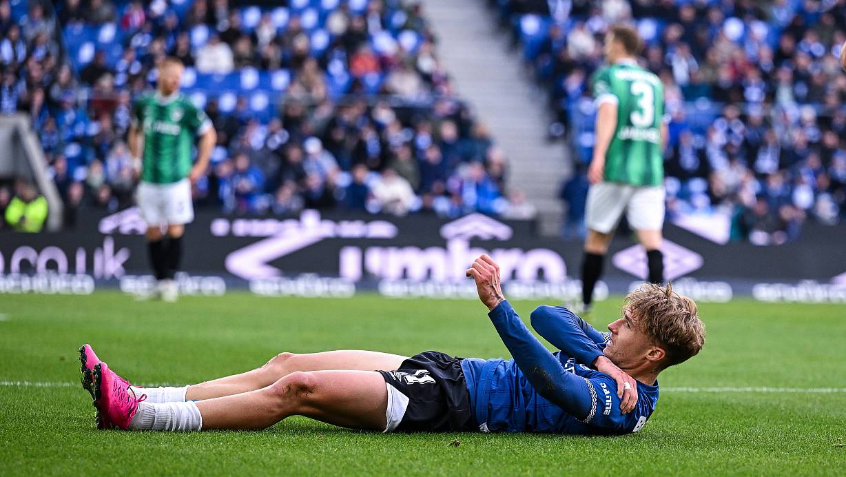 Arminia-Stürmer Joel Grodowski verletzte sich im Derby gegen Preußen Münster an der Schulter. | © Teresa Kroeger