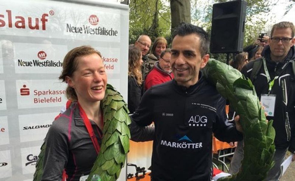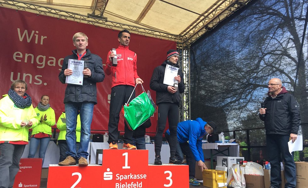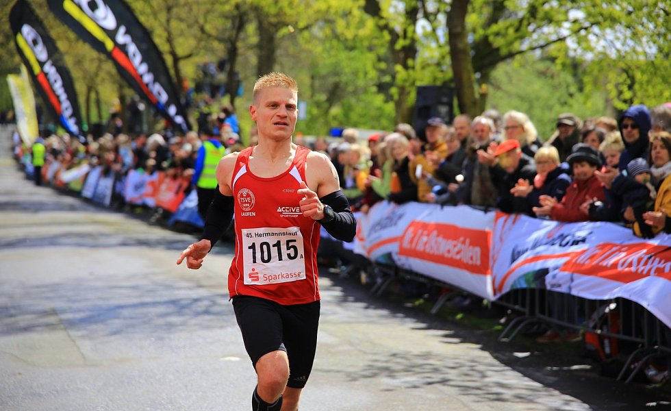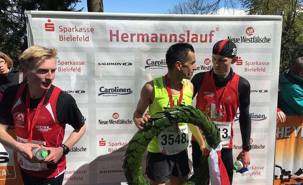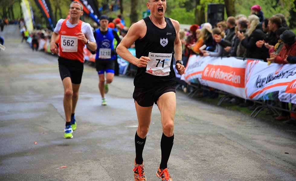 Zum neunten Mal hat Elias Sansar am Sonntag den Hermannslauf gewonnen. 1:49:10 Stunden brauchte der Rekordgewinner der LG Lage-Detmold-Bad Salzuflen für die 31,1 Kilometer. Den zweiten Platz belegte Jan Kerkmann vom TSVE Bielefeld mit einer Zeit von 1:51:02. Gleich dahinter überquerte Ralf Ruthe von der Eintracht Bielefeld die Ziellinie in einer Zeit von 1:52:09.