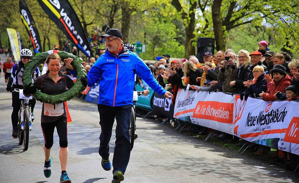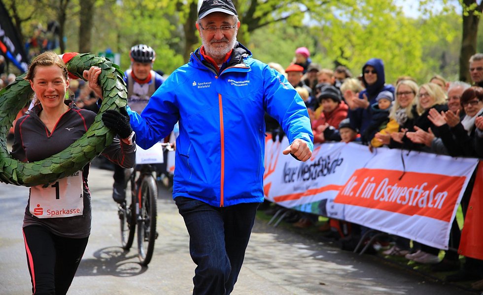 Die schnellste Frau war Hilde Aders aus Norwegen. In 2:05:47 erreichte sie das Ziel an der Bielefelder Sparrenburg. Die Starterin des Tromsø Løpeklubb/Team Mizuno gewann damit - nach 2015 - das zweite Mal. Dahinter kam die Lokalmatadorin Stephanie Fritzemeier vom TSVE Bielefeld in 2:16:19 ins Ziel. Dritte wurde Victoria Willcox-Heidner vom LC Solbad Ravensberg (2:16:50).