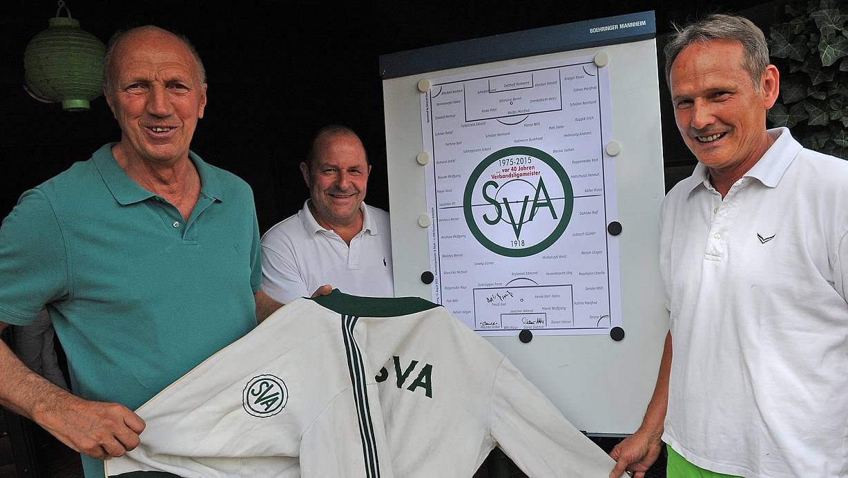 "Einige haben sich ja ein klein wenig verändert, aber ich habe sie trotzdem alle wiedererkannt", sagt Axel Preuß schelmisch lächelnd. Sein Blick ruht dabei auf dem die Haare immer noch lang, jetzt allerdings in grau, tragenden Dieter Meis. Der Abwehrrecke des Meisterteams hat die Wiedersehensfeier auf der Tennisanlage der SVA mit Dietmar Starke und Volker Peschke organisiert.
