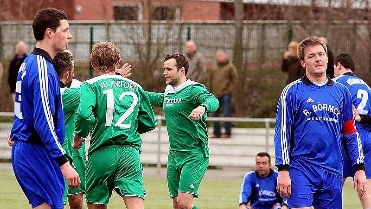Nach zwölf Minuten hatte der BSV noch Glück, da Eduard Reh unbewacht die Lederkugel verstolperte. Dafür half die Abwehr beim Herforder Führungstreffer (25.) kräftig mit. Manuel Pierri bediente mit einer missglückten Abwehr Mario Wihan, der dieses Geschenk per Flachschuss aus 13 Metern dankend annahm. In der 28. Minute lag der Ball erneut im Bünder Tor, was jedoch dank Schiedsrichter Andreas Wienold ohne Folgen blieb. "Ich konnte da keine Abseitsposition erkennen", gestand Björn Kenter.