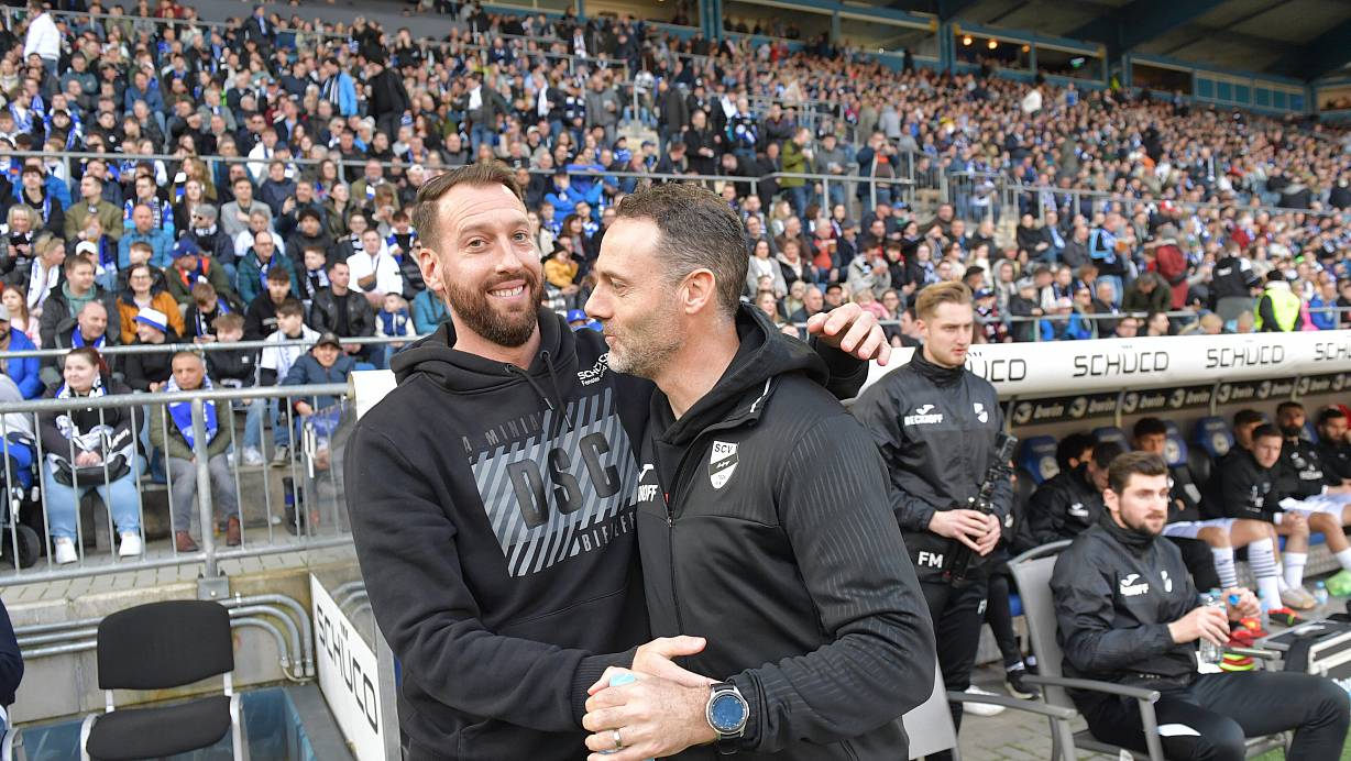Wiedersehen am Samstag: DSC-Trainer Mitch Kniat (links) und Alexander Ende vom SC Verl bei einem früheren Duell der beiden Clubs in der Bielefelder Schüco-Arena. | © sport/presse/foto Dünhölter