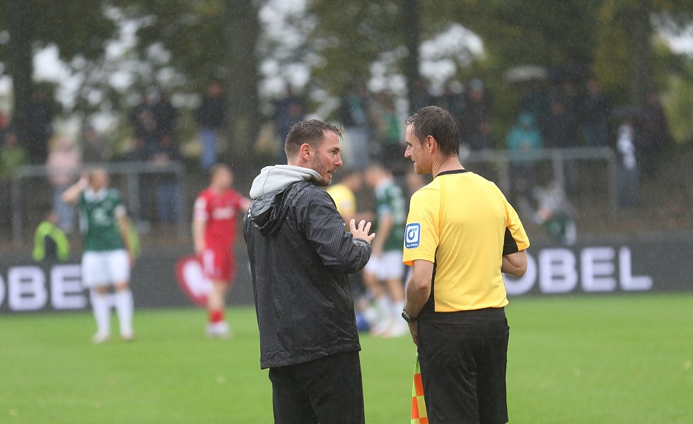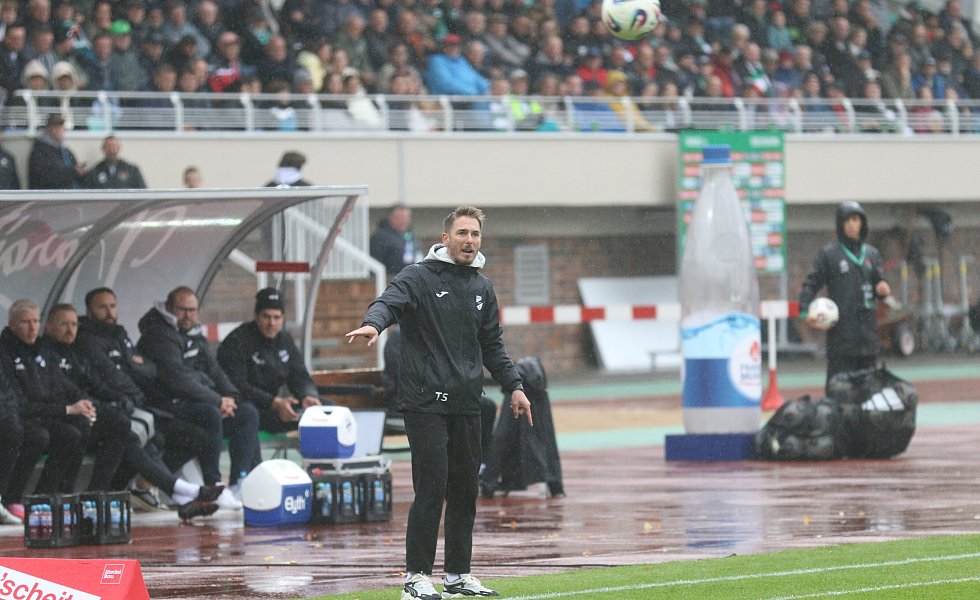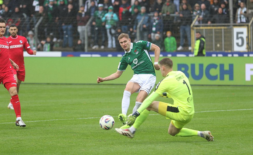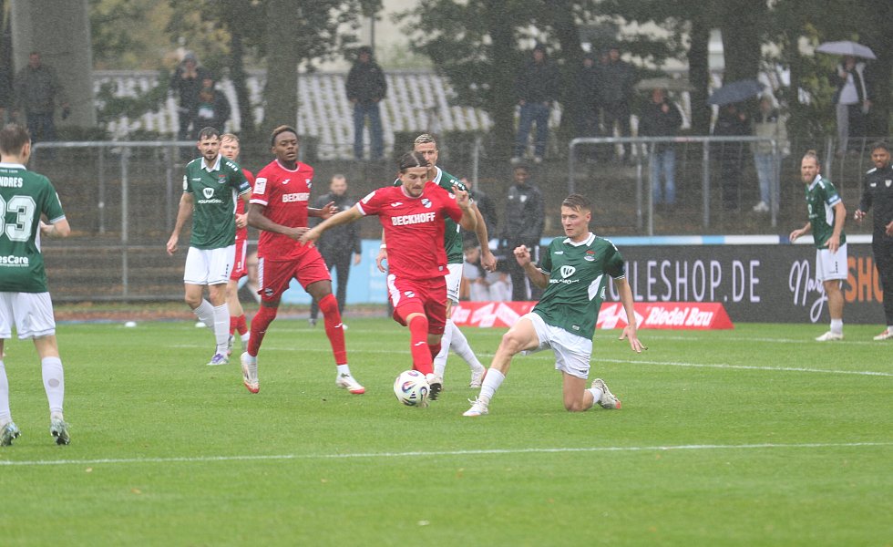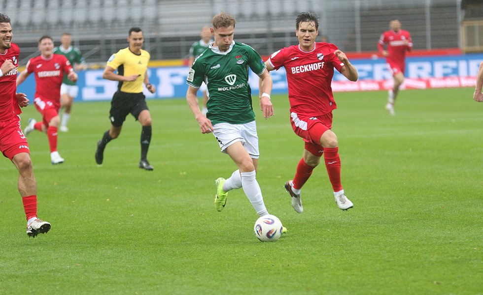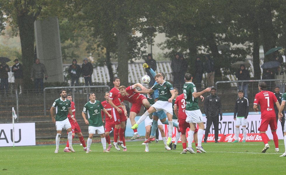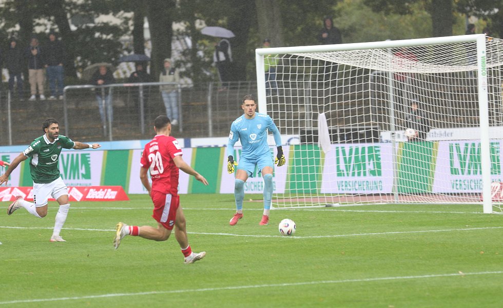 Nach zuletzt zwei 1:5-Niederlagen gegen Aachen und in Ulm begann der Aufsteiger bei strömendem Regen in der Riedel-Bau-Arena im Sachs-Stadion furios. Ein strammer Schuss von Johannes Geis flog am linken Torwinkel vorbei (3.). In der vierten Minute parierte der Verler Schlussmann Philipp Schulze zunächst stark gegen den frei auf ihn zulaufenden Jakob Tranziskas mit dem Fuß, dann sauste ein Schuss von Ekin Celebi nur knapp am rechten Pfosten vorbei.