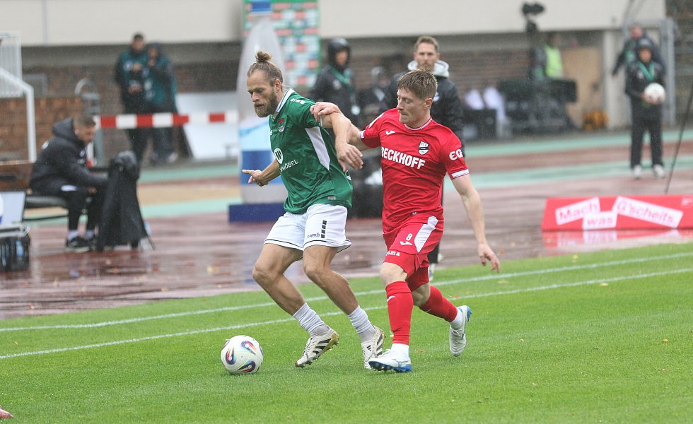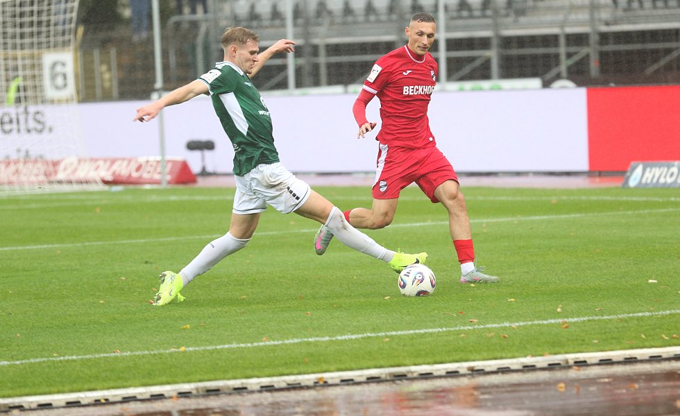 Bei der Rückkehr an seine alte Wirkungsstätte, Tobias Strobl war von November 2019 bis April 2022 Trainer der „Schnüdel“, hatte der Verler Coach gegenüber dem 2:2 am vergangenen Mittwoch gegen Ingolstadt zwei Wechsel auf den Außenverteidigerpositionen vorgenommen. Für den erkrankten Michel Stöcker kehrte Kapitän Niko Kijewski (links) ebenso in die Startelf zurück wie Oualid Mhamdi (rechts). Paul Lehmann musste auf die Bank.