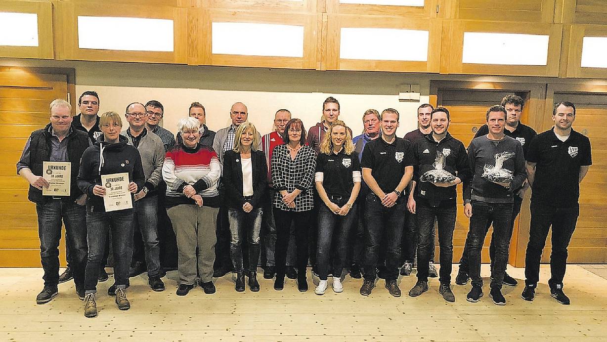 Die silberne Vereinsnadel für 30 Jahre Mitgliedschaft erhielten Markus Balkenhol, Vanessa Blume, Dieter Bremer, Vera Dierkes, Klaus Drolshagen, Rainer Fuest, Egon Götte, Edith Lange, Elke Riepen, Jürgen Riepen, Ruth Schlichtherle, Andrea Watermeier, Monika Watermeier und Rainer Wittkopp. 15 Jahre Mitglied im Verein sind Marcel Dierkes, Gabi Drolshagen, Andrea Fuest, Julian Sauerwein und Michael Winter.