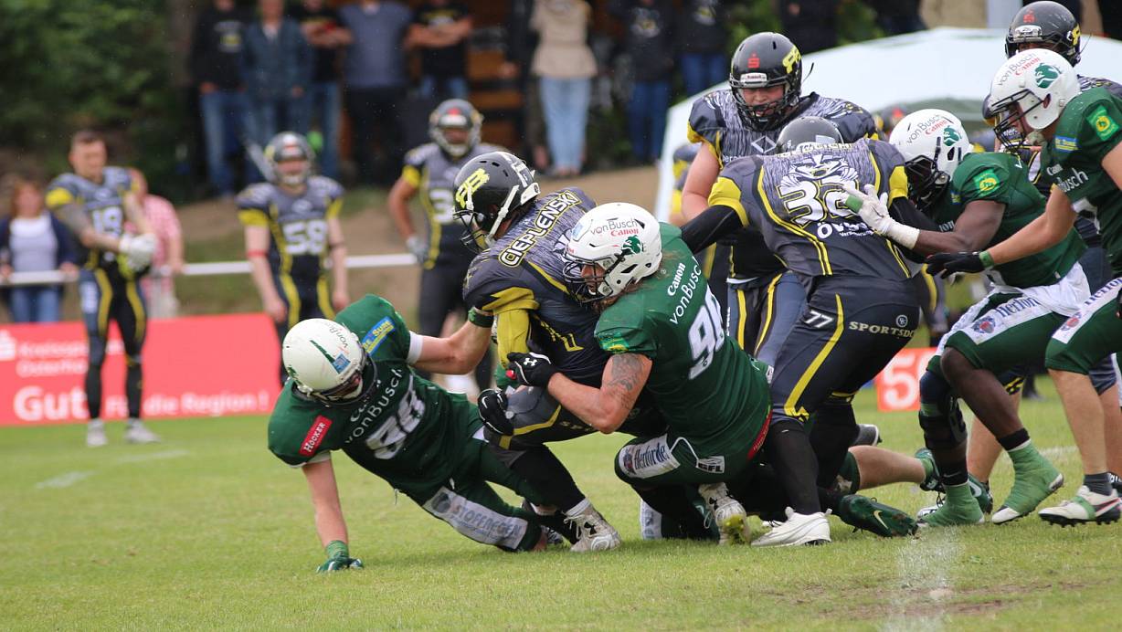 Football: Den arg gebeutelten "Wilden Hunden" gelingt ein 34:29-Sieg