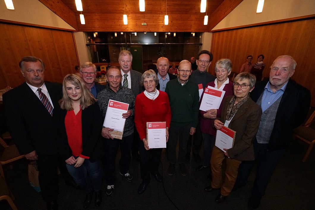 Mit viel Applaus und Urkunden wurden neben Dieter Meyer (Sportfreunde Sennestadt) noch Karin und Norbert Kahmann (TuS Brake) für ihr 45. Bestehen bedacht. Mittlerweile 40 Sportabzeichen groß ist die Sammlung von Helga Twesmann (SV Ubbedissen/TuS Hillegossen) und von Bernd Pilske (TuS Brake). Zum 35. Mal legten Siegmar Breckle (BTG), Klaus Guntenhöner (TuS Brake) und Werner Loegel (BTG) das Sportabzeichen ab. Zwei Jubilare - Christian und Johannes Pischel (TuS Brake) schafften es zum 30. Mal. Außerdem wurde für die 25. Abnahme Regina Wocken geehrt.
