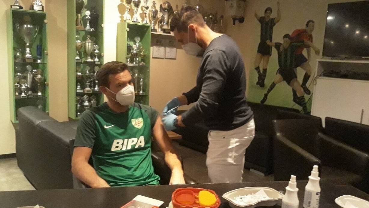 Niklas Hoffmann ist niedergelassener Internist in Bielefeld. Ganz nebenbei spielt er beim TuS Dornberg in der Altliga Fußball. Er führt gemeinsam mit Bartosz Weiß zwei Praxen in Bielefeld. In der Finkenstraße und im Hirschweg. „Diese Aktion war ein bisschen aus der Not geboren, weil wir Impfstoff übrig hatten“, erklärt Hoffmann. Gemeinsam mit Dornbergs sportlichem Leiter Thies Kambach und Vorstandsmitglied Thomas Nottebrock entstand die Idee, eine Booster-Aktion beim TuS anzubieten.