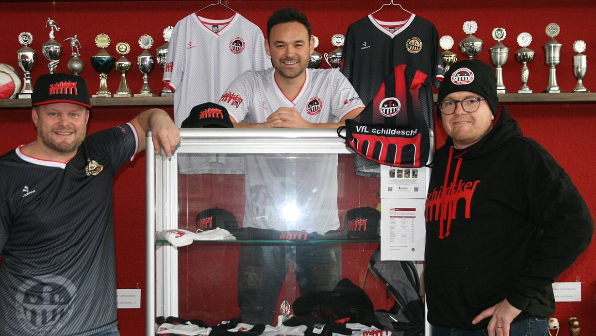 Auch der VfL Schildesche feiert 125-jähriges Jubiläum. Zu diesem Anlass gibt es ein Sondertrikot, welches auch individuell beflockbar ist. Außerdem bietet der Schildsker-Shop Fahnen, Schlüsselanhänger, Schals, Rucksäcke, Kaffeebecher, Grillzangen und noch vieles mehr. Zu kaufen gibts die Schildsker-Artikel entweder im Vereinsheim am Sportplatz des VfL, oder im REWE Markt an der Beckhausstraße. Auch Onlinebestellungen über www.vfl-schildesche.de/shop sind möglich. „Wir liefern sogar persönlich ohne Versandkosten, so dass alles definitiv vor Weihnachten ankommt“, sagt Schildesches sportlicher Leiter Tim Sachwitz.
