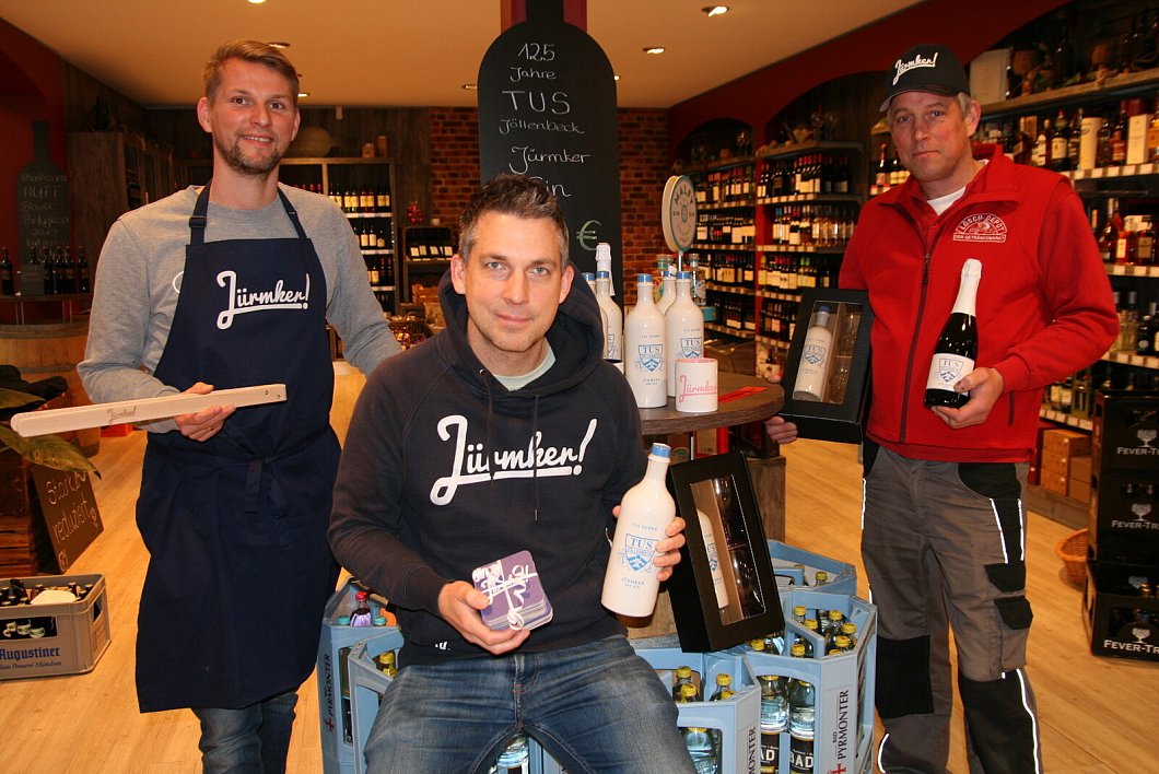 Vom Hoodie über die Mütze bis hin zum Weihnachtsklassiker den Socken gibts im Jürmker-Shop alles, was das Herz begehrt. Dazu brandneu der 125-Jahre Jürmker-Gin, passend zum anstehenden Jubiläum. In Zusammenarbeit mit dem Bielefelder Unternehmen Gin Lossie gibt es ab sofort die limitierte Sonderedition, nur in der Getränkewelt Schmidtke in Jöllenbeck an der Dorfstraße. Neben der Möglichkeit, die Jürmker-Artikel in der Getränkewelt zu kaufen (nur Bargeldzahlung möglich), kann auch in Ruhe im Internet unter www.juermkershop.de gestöbert werden. „Die sichere Variante, dass alles auch vor Weihnachten noch da ist, ist natürlich der Shop in der Getränkewelt“, sagt Jöllenbecks sportlicher Leiter Tobias Demmer.