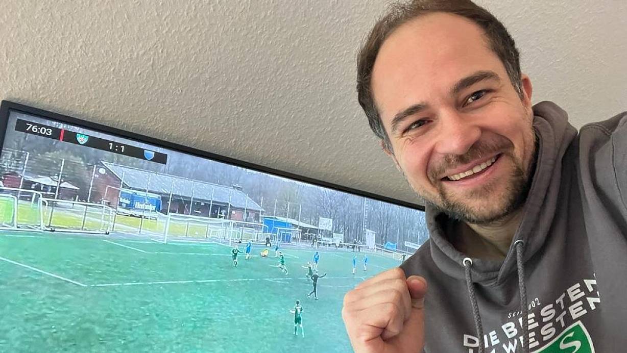 Sogar der Baumgartsche Hund Jory sprang seinem Herrchen bei dessen „Ausrastern“ auf den Rücken. Beruhigen konnte das den impulsiven Geißbock-Coach, der seine Kultmütze auch beim Fernseh-Fußball trug, nicht. Jens Horstmann verfolgte das Spiel seiner Dornberger gegen Neuenbeken ebenfalls auf dem heimischen Fernseh-Apparat. Über den Internetdienst Soccerwatch. Natürlich im Dornberger Dress. „Das gehört sich doch so. Der Bart ist Dank Corona ähnlich, aber Steffen Baumgart hat eine geilere Mütze“, zieht Horstmann einen Vergleich.