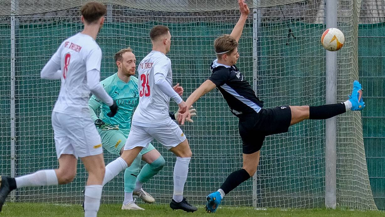 Groß war der Unterscheid allerdings in den ersten 20 Spielminuten. Die Gastgeber vermochten sich kaum einmal zu befreien. Delbrück drängte den VfL in die Defensive und erspielte sich einige aussichtsreiche Momente. Für den ersten Theesener Szenenapplaus sorgte ein Kopfball von Finn Jaster nach einer Viertelstunde. Weitere 15 Minuten später landete ein Kopfball von Yatma Wade auf der Latte, und Timo Niermanns Freistoß strich am Tor vorbei.