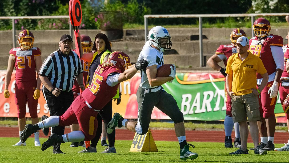 Vorteil Grün: Wie beim 36:24 gegen die Troisdorf Jets wollen die Bulldogs auch den Bonn Gamecocks entwischen. | © Andreas Zobe