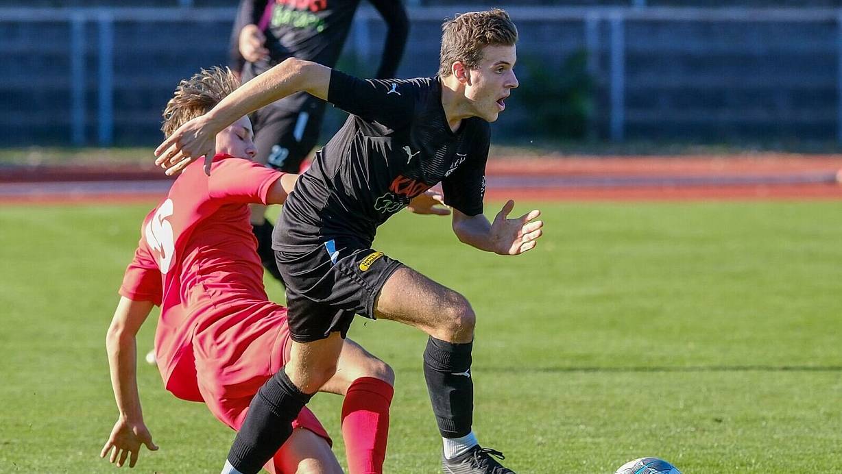 Der VfL Theesen, hier Timon Siebert, war meist einen Schritt schneller als Fichte mit Jonas Kreickenbaum (l.). | © Andreas Zobe