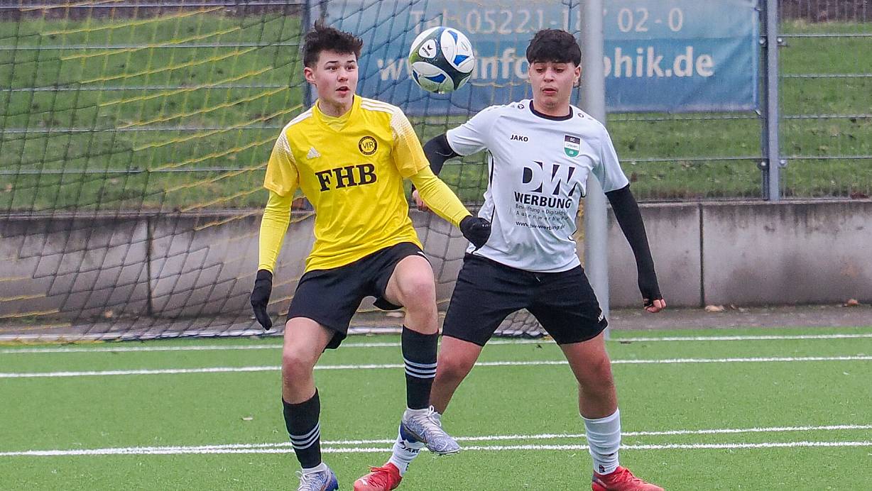 Milos Zivic (l.) aus der C des VfR Wellensiek erzielte gegen Greven das entscheidende Tor zum 1:0 durch einen Freistoß. | © Andreas Zobe