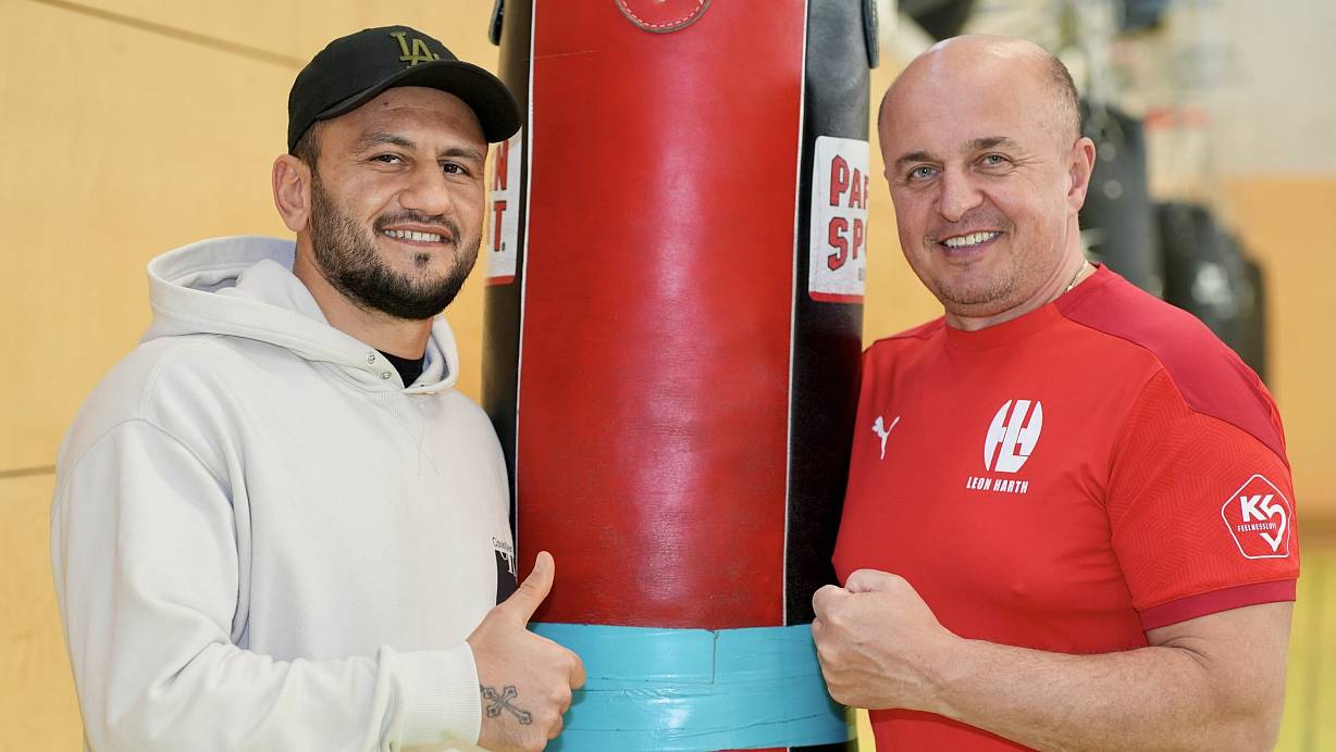 Freuen sich auf den Kampfabend in Bielefeld: Titelverteidiger Leon Harth (l.) und sein Trainer Alexander Bich. | © Peter Unger