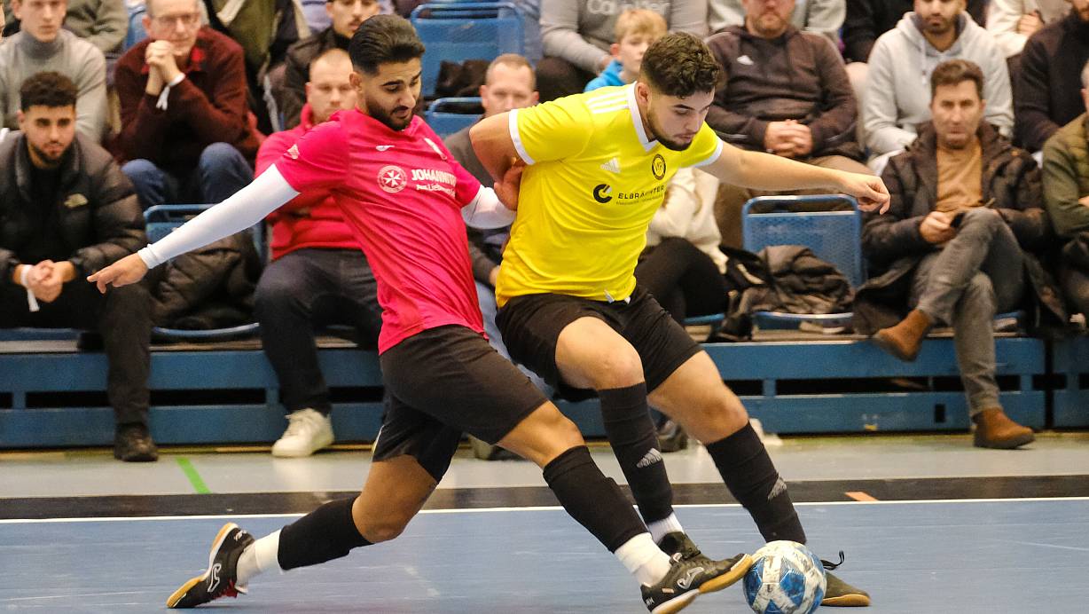 Ende des Jahres kämpfen die heimischen Teams um die 25. Hallen-Fußball Stadtmeisterschaft. In dieser Szene aus dem Vorjahr streitet Tunay Mert Kutluhan (damals Gadderbaum, links) mit einem Wellensieker um den Ball. | © Andreas Zobe