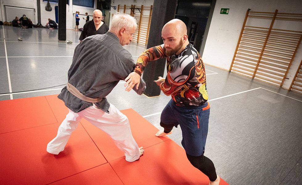 Wenn der Trainer eine Technik mit mir übt oder demonstriert, spüre ich, wie schnell und fest er zupackt. Vor Würfen bringt er sein Gegenüber effektiv aus dem Gleichgewicht. Seine Schläge kommen schnell und präzise, aber auch kontrolliert. Zu Beginn einer Übung hat er grundsätzlich die Deckung oben.