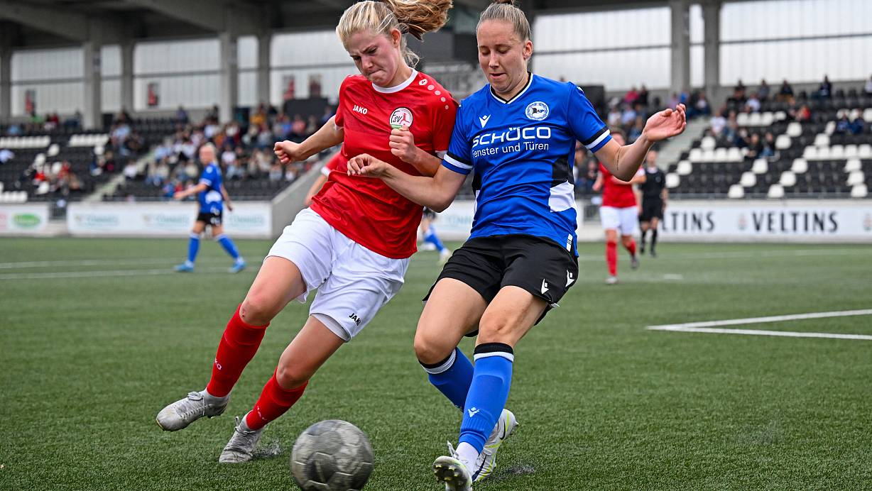 Szene aus der vergangenen Saison: Zum Saisonauftakt gewannen Arminias Frauen, hier Leonie Heitlindemann gegen Katharina Ingrid Raedeker (l.), 2:0 bei Gütersloh II. | © Thomas F. Starke