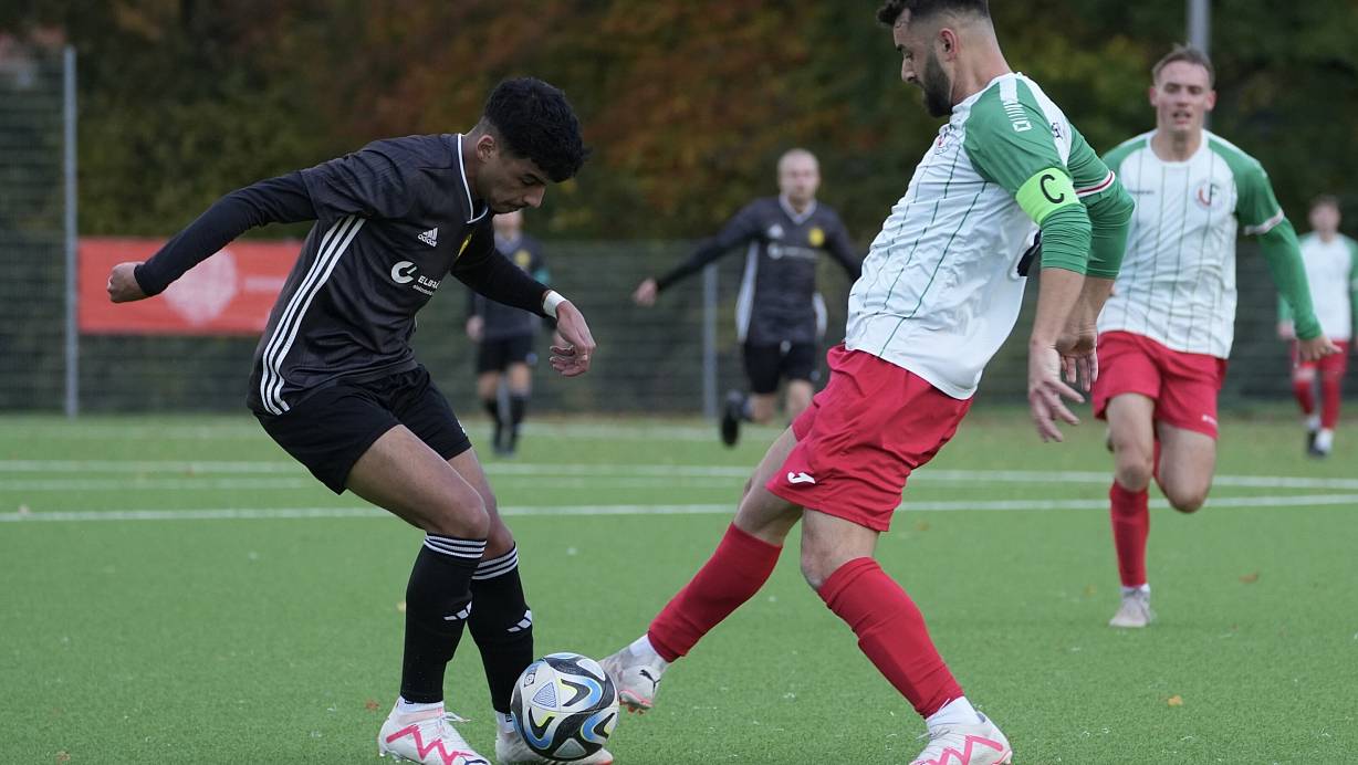 Wellensieks Taha Ajdar Moulla gewinnt in dieser Szene den Zweikampf gegen Fichtes Kapitän Hüseyin Karahan (r.). | © Peter Unger