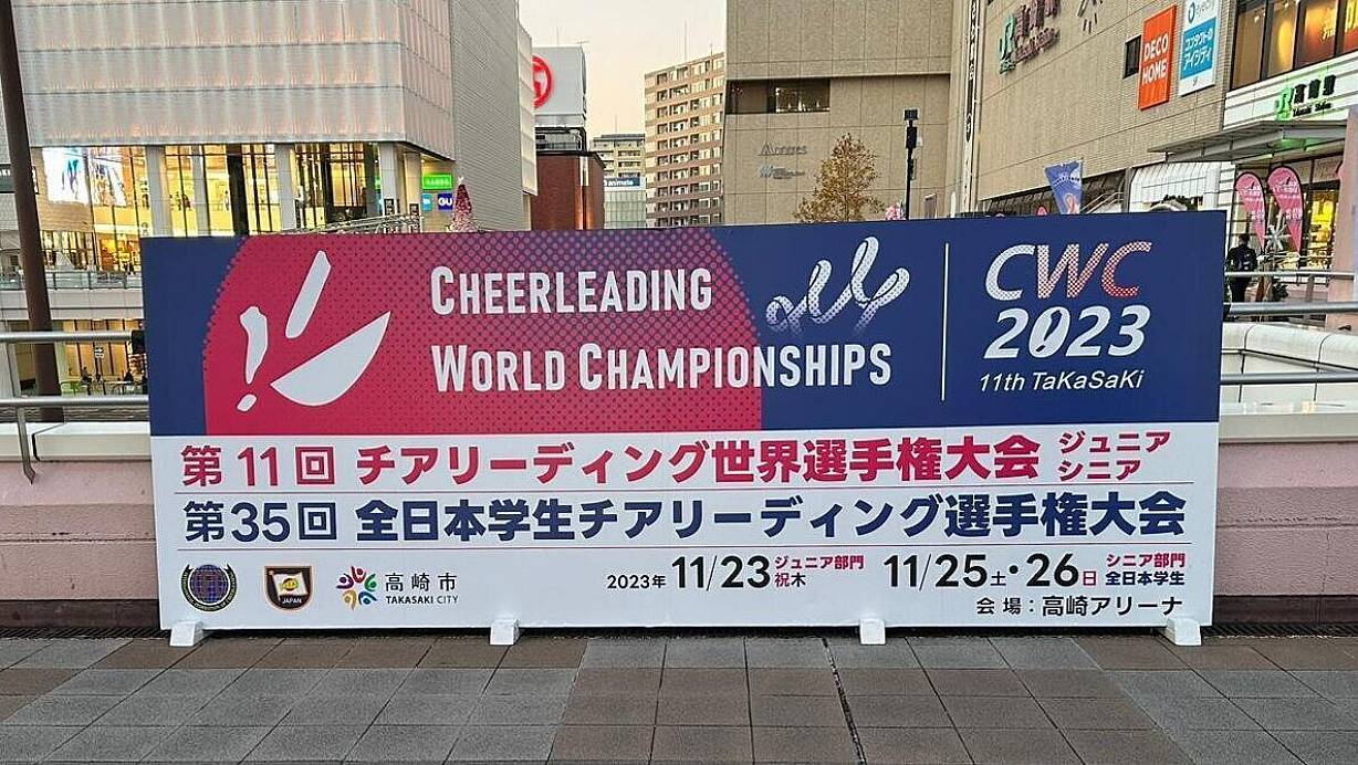 Ein Schild im japanischen Takasaki zeigt es: Hier findet die Cheerleader-WM statt und Wildcats aus Bielefeld sind dabei. | © Sarah Möller