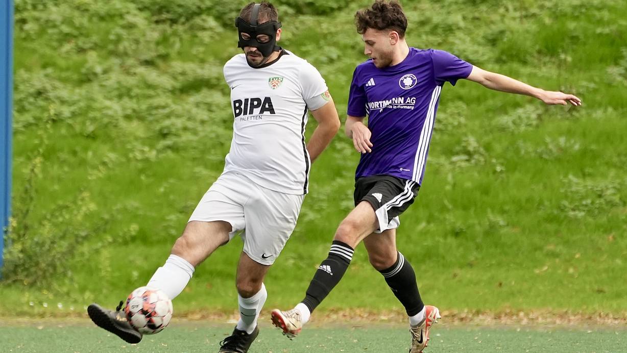 Dornbergs Kapitän Valon Gashi, der seit Mai 2023 wegen einer Kopfverletzung mit Gesichtsmaske spielt, bleibt dem TuS mindestens noch eine Saison erhalten. | © Peter Unger