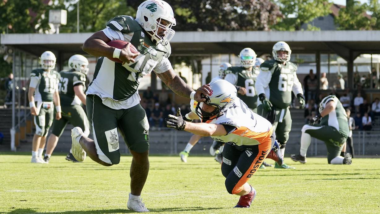 Auch auf die Läufe von Runningback Jalen Starks (l.) setzen die Bulldogs im Heimspiel gegen Lübeck. | © Peter Unger