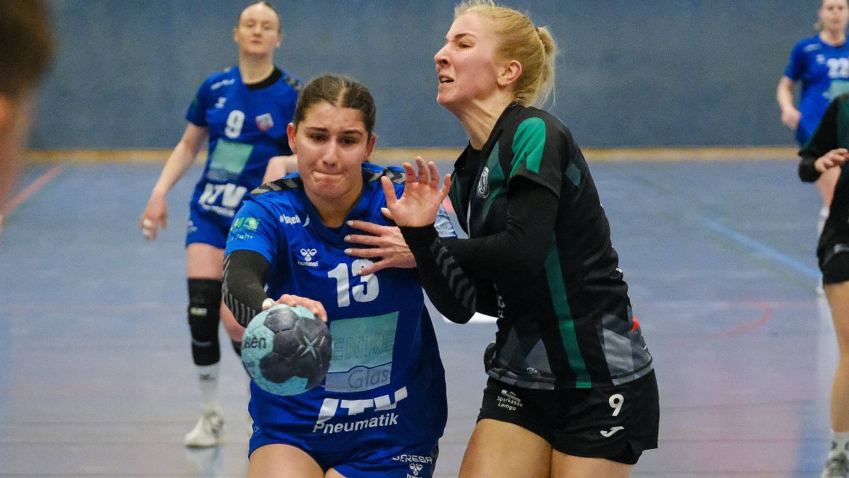 Lena Tenzler (Nr. 13) und ihre Jöllenbeckerinnen haben in Henstedt-Ulzburg eine harte Nuss zu knacken. | © Andreas Zobe